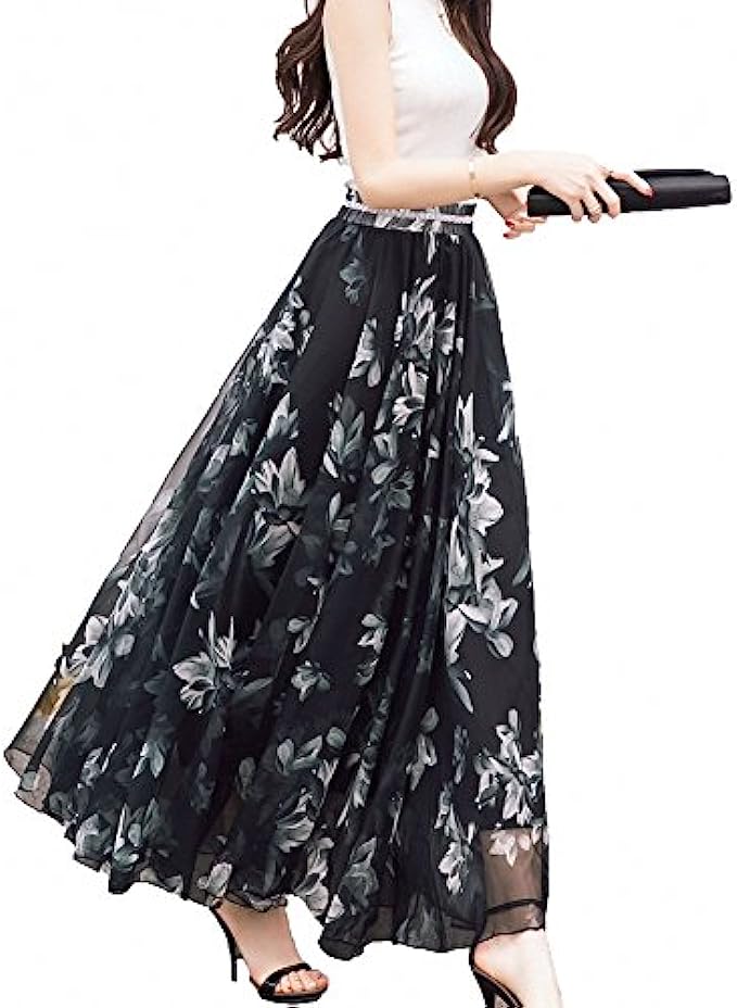 100% Polyester Elastic closure 95% Polyester,Chiffon, lightweight and skin friendly fabric, stretchy and comfortable to wear. Floral print casual A-line maxi skirts with elastic high waisted design,floor length.Plus size long maxi dress skirt can be beach dress,easy to dress up and down. Lightweight chiffon swing summer beach long skirt,It can be worn with tank tops, t-shirts, bikini, sandals, straw hat, flats, heels etc. Flowy boho pattern long maxi skirt is good for Spring, Summer, and Fall,good for the beach swimwear cover up. Suitable for Work, Office, Casual, Party, Date, Trave, Holiday, Vacation, Beach, Swimming Pool, Home, School, Park, Outdoor, Nightclub, Shopping, Street and Daily Wear.