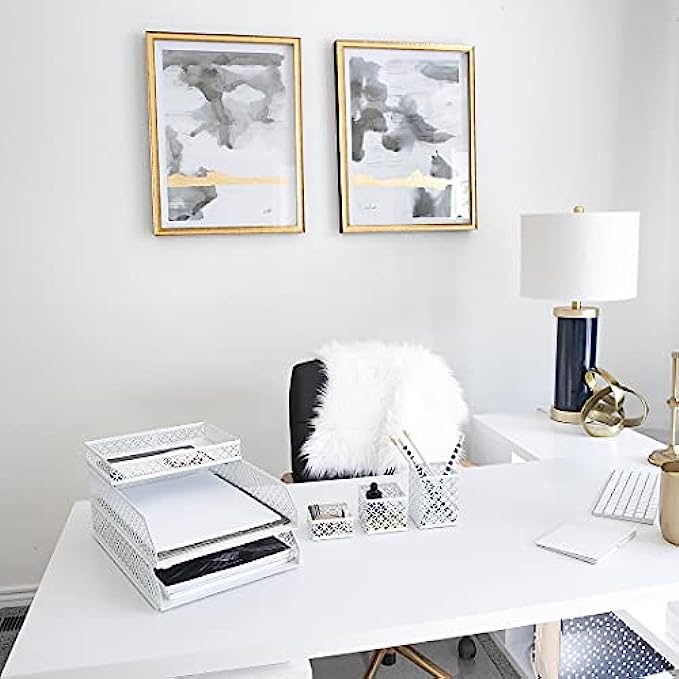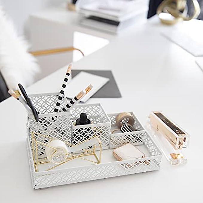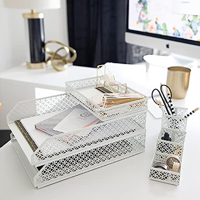 • CHIC, FEMININE DESIGN: Ready to show off your personality with a file organizer desktop that makes cute room décor for teen girls? These desk accessories and desk organizer set will keep you organized while also looking great and feeling your best with its White metal construction for desk organizers and accessories for women.