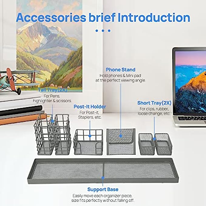 • ❤ 【Include】 2 pen holders, 2 clips trays, 1 phone stand, 1 card holder and 1 support base