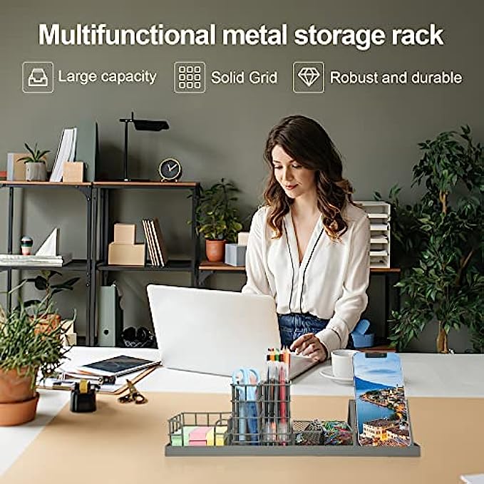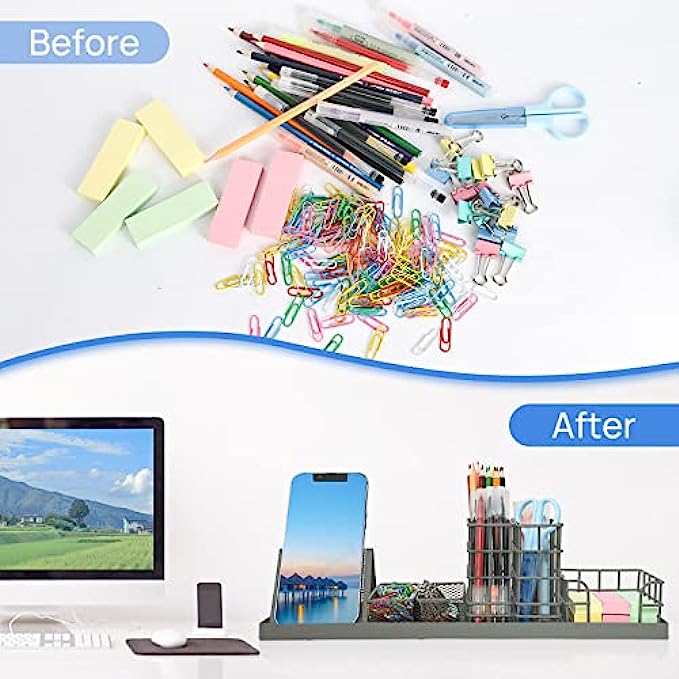 • ❤【Stylish Designed】7 divided compartments to rearrange your office supplies: including your phone, pens, sticky notes, paper clips, and more, in one spot. Save time on the desk to find things. Clean and tidy work environment can improve work efficiency.