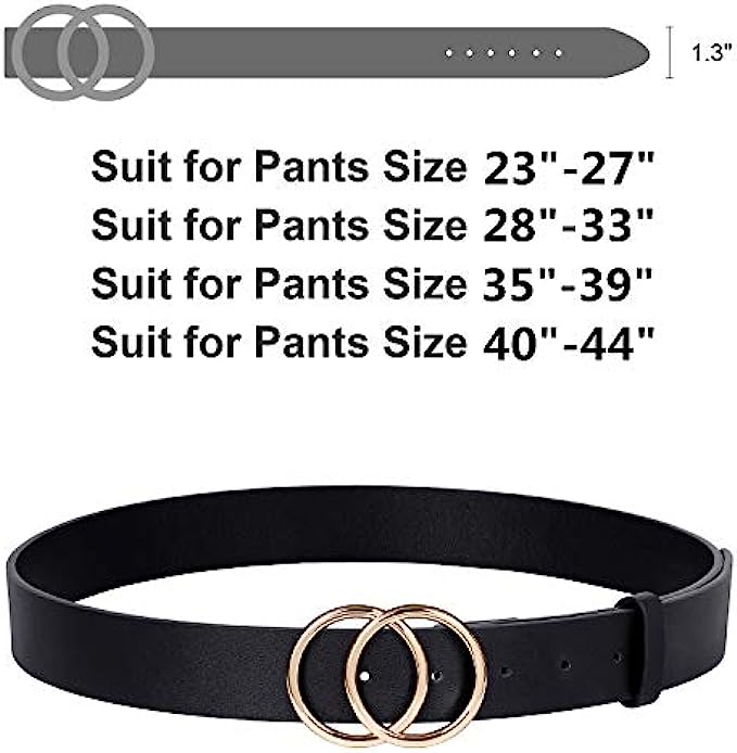 100% Leather Double Ring closure ❤Design---The vintage double-loop clasp blends perfectly with the western design,it will make your outfit look very distinctive.Vintage delicacy belt buckle will make you stand out from the crowd,comfortable to wear and stylish. ❤Material---This women leather belt was made of high quality leather,soft and comfortable on your dresses.Durable and sturdy leather belt can be used for years.The belt is not pin buckle belt, it’s easy to wear and take off. ❤Outfits---The women belts can be worn with any pair of jeans,dresses,or overcoats,which suitable for your wear in any season and all occasions.There are three color belt in one package,It gives you a different choice. ❤Size--- The jeans belt perfect for pants size 23"-27"/28"-33"/35"-39"/40"-44". A puncher enclose in the package for you to DIY trim or punching with our instructions if the size not fit you well. ❤Gift---The leather belt as wonderful gift for families and friends on birthday ,thanksgiving day, Christmas,and other anniversary.