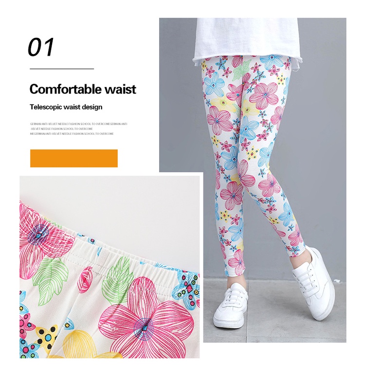 Kids Leggings For Girls Long Pants Flower Print Comfort Cotton Beauty Legging Girls Tights