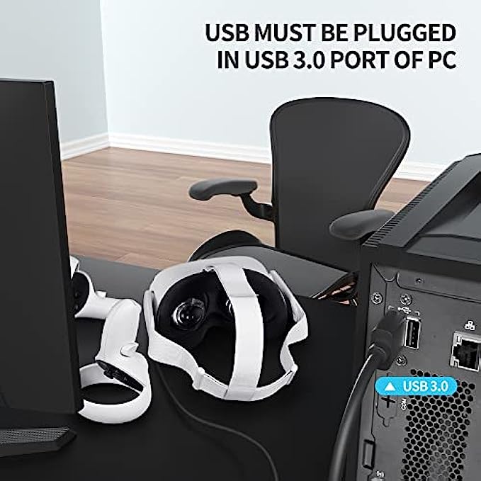【Perfectly Compatible】 Used this link cable for Oculus Quest, connect to your PC to play all Oculus Rift apps and steam VR games.