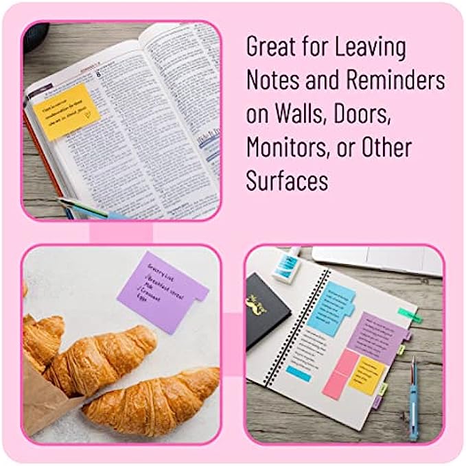Neon Sticky Note Set (410pc) with Bookmark Index for Planner, Journaling, Bible, Calendar