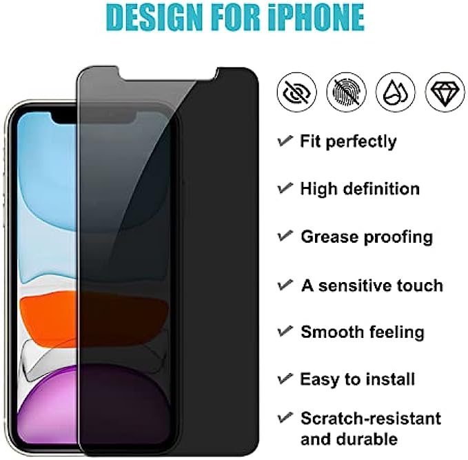 ?[Bonus Packs] Don't worry about installation mistakes, give an extra piece for a limited time. (3 pieces in total Specially designed for iPhone 11/iPhone XR) ?[Anti-Spy Tempered Glass] Choose the most appropriate color depth for the anti-peep coating, while satisfying privacy and visual comfort. Hides your private and sensitive information from strangers in public places. ?[Superior Quality] Made from the 0.33mm Highest Quality tempered glass with 100% Bubble-Free Adhesives for easy installation and no residue when removed. Maintains the Original Touch Experience, Hydrophobic and Oleo-phobic coatings protect against sweat and oil residue from fingerprint. ?[Case Friendly] iPhone 11/iPhone XR privacy screen protector will allow you to use almost all kinds of case.It is easy to finish the protectors by aligning the edges and the smooth feel allows you to enjoy every touch with the phone. ?[Package Included] 3 Pack Privacy Screen Protector, Wet/Dry Wipes, Dust Removal Stickers and Lifetime Warranty.