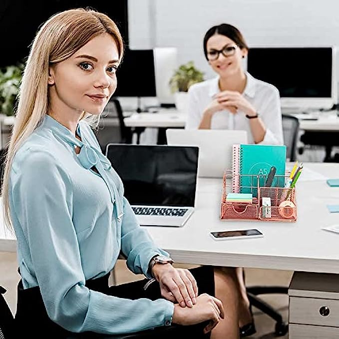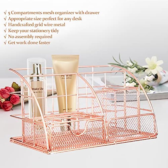• STAY ORGANIZED IN STYLE: Whether you commute to an office or work from home, these rose gold desk accessories will keep you organized while also looking great in any work space. And you can easily store business cards, notepads, pens, charging cable and other office supplies.