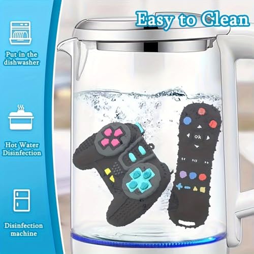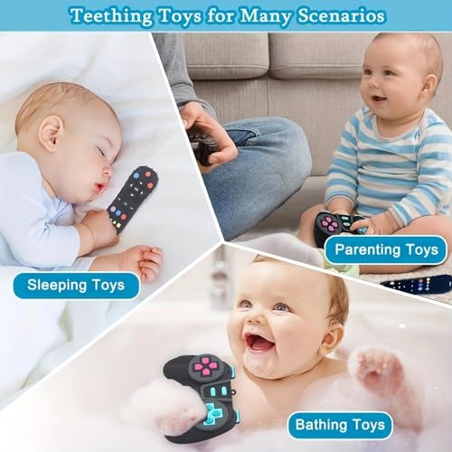 AALFA Baby Teething Toy, Soft TV Remote+Game Machine Shape Chew Set Intellectual Development Intellectual Development Educational Toy,Safe Silicone Toddler Infant (Pink (Handle+Remote Control))
