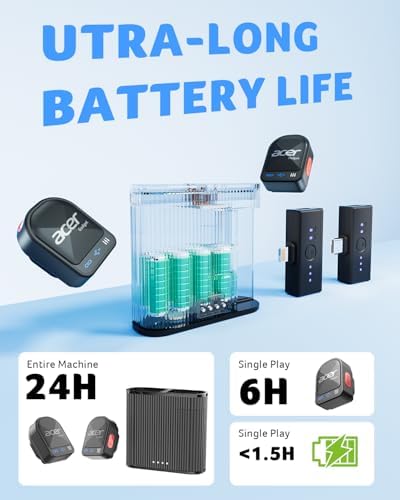 Wireless Lavalier Microphone for iPhone/Android/PC/Laptop Portable Mini Clip on Mic with Lightning + USB C Plug, 48KHz 24Bit, Noise Cancellation, 24H Battery for Video Recording