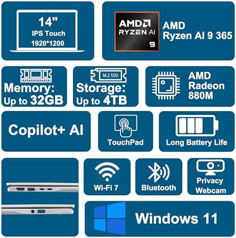Sponsored Ad - Swift 14 AI Portable Laptop 14" WUXGA Matte Touchscreen AMD 10-core Ryzen AI 9 365 (Up to 50 NPU Tops - Up to 73 GPU Tops) 32GB RAM 1TB SSD for Creator Business Work Win11 ICP Hub/Copil