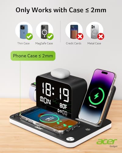 7-in-1 Wireless Charging Station: Charger Stand for Multiple Devices for Apple - iPhone 16 15 14 13 12 Pro Max Apple Watch Airpods, Wireless Charger iPhone Charging Station with Bluetooth TimeSyn