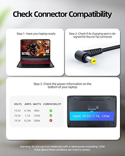 10FT 135W Charger Fit for Acer Nitro 5 Charger - (Replacement for Acer Nitro 5 AN515-57 AN515-55 AN515-54 AN515-51 AN515-53 N20C1 N18C3 N18C4 Gaming Laptop Power Cord Supply)