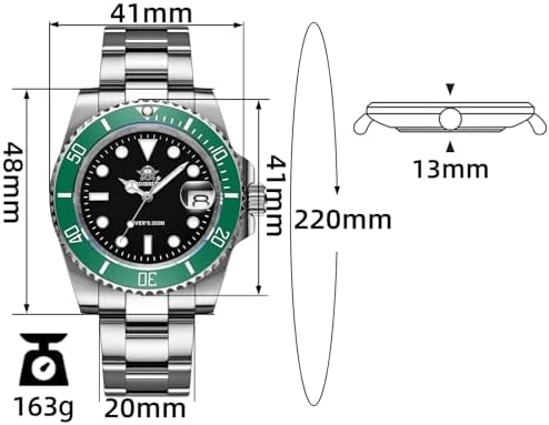 41 MM Mens Dive Watch Quartz Movement Watches for Men Easy to Read Dial 200 M Waterproof BGW9 Luminous Analog Orange/Red/Green/Black Gradient Dial