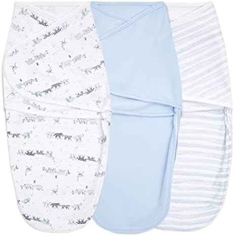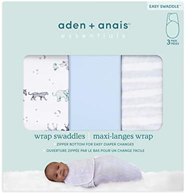 aden + anais Essentials Easy Swaddle Wrap Quick Change with Bottom Zipper, Snug Cotton Knit Baby Wrap Swaddle Blanket for Newborns, TOG 1.0, 3-Pack, Rising Star, 0-3 Months, Small/Medium