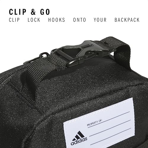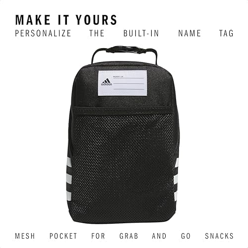 adidas Santiago Lunch Bag Cooler for Women and Men, Insulated Food Container Box with Mesh Pocket, Black/White, One Size
