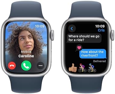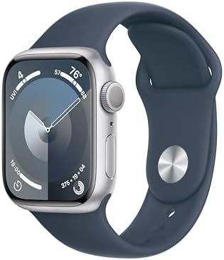 Apple Watch Series 9 [GPS, 41mm] Silver Aluminum Case with Storm Blue Sport Band, M/L (Renewed)