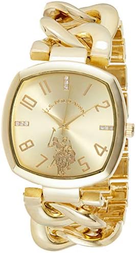 Sponsored Ad - U.S. Polo Assn. Women’s Gold-Tone Chain Bracelet Watch – 38mm Square Case, Rhinestone Dial, Adjustable Link Strap, Elegant Quartz Dress Watch with Gift-Box