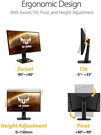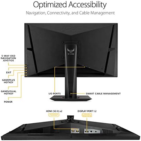 TUF Gaming 27" 2K HDR Gaming Monitor (VG27AQ) - QHD (2560 x 1440), 165Hz (Supports 144Hz), 1ms, Extreme Low Motion Blur, Speaker, G-SYNC Compatible, VESA Mountable, DisplayPort, HDMI ,Black