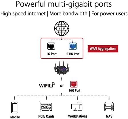 ROG Rapture GT-AX11000 Pro Tri-Band WiFi 6 Extendable Gaming Router, 10G & 2.5G Ports, ASUS RangeBoost Plus, Triple-level Game Acceleration, Subscription-free Network Security, AiMesh Compatible