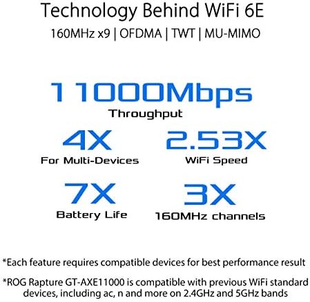 ROG Rapture GT-AXE11000 Tri-band WiFi 6E Extendable Gaming Router, 6GHz Band, 2.5G Port, Triple-level Game Acceleration, VPN Fusion, Subscription-free Network Security, AiMesh Compatible
