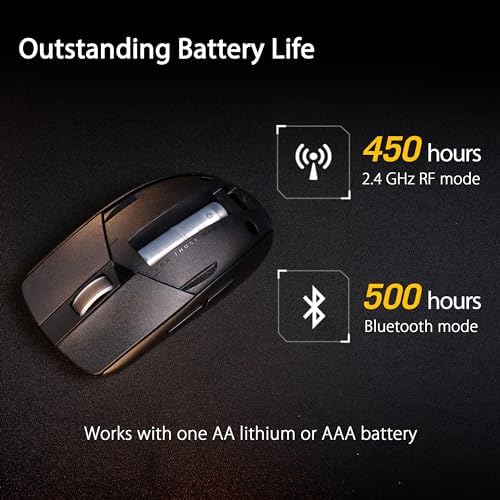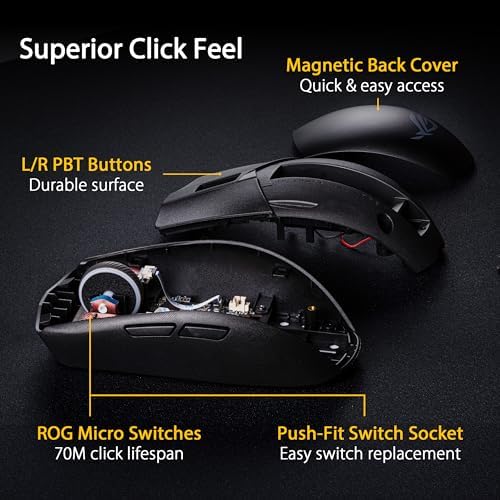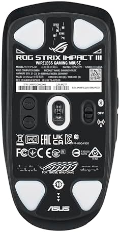 ROG Strix Impact III Wireless Gaming Mouse, 57 G Lightweight, 36K DPI Sensor, Bluetooth & 2,4GHz RF, ROG SpeedNova, Up to 618hrs Battery Life, Replaceable Switches, ROG Omni Receiver, Black