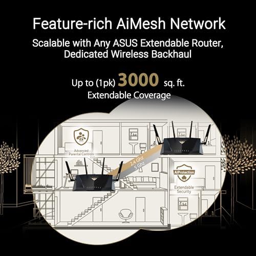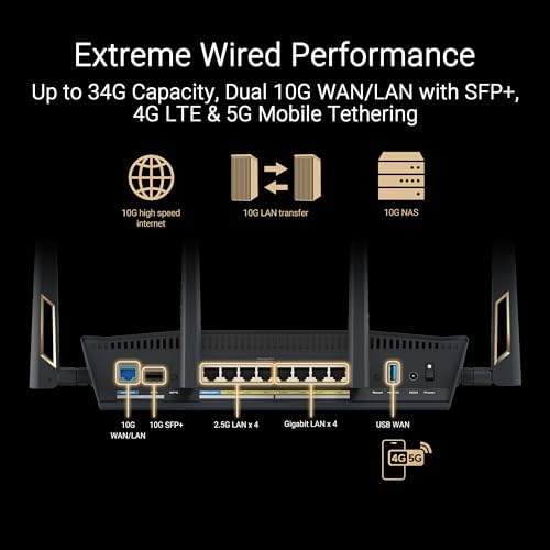 RT-BE88U Dual-Band WiFi 7 AiMesh Extendable Performance Router, 4K-QAM, MLO, Dual 10G Ports, SFP+, 4X 2.5G Ports, 4X 1G Ports, 34G WAN/LAN Capacity, Network Security, Built-in VPN