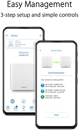 ZenWiFi XT9 AX7800 Tri-Band WiFi6 Mesh WiFiSystem (2Pack), 802.11ax, up to 5700 sq ft & 6+ Rooms, AiMesh, Lifetime Free Internet Security, Parental Controls, 2.5G WAN Port, UNII 4, Charcoal