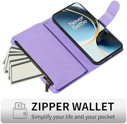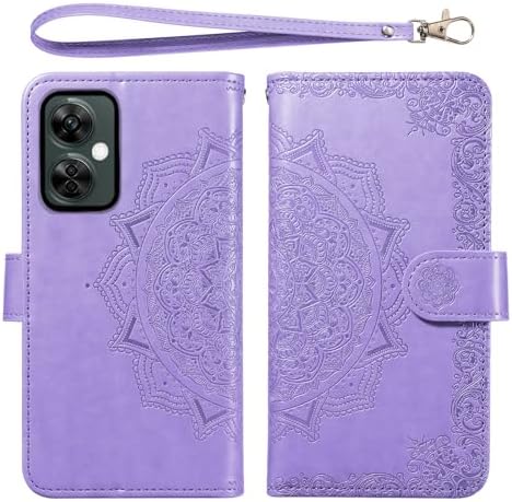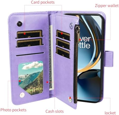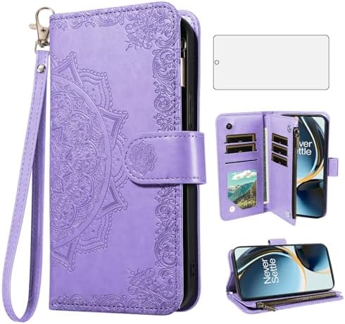Phone Case for OnePlus Nord N300 5G Cell Wallet Cover with Tempered Glass Screen Protector and Flower Flip Credit Card Holder Slot Stand 1+ N 300 N3005G CPH2389 Women Men Light Purple