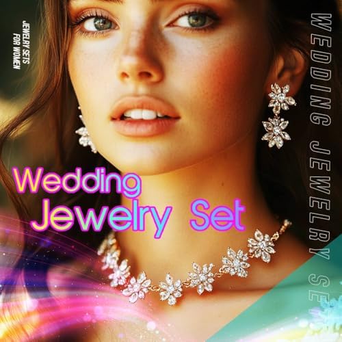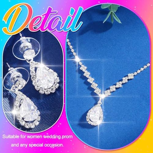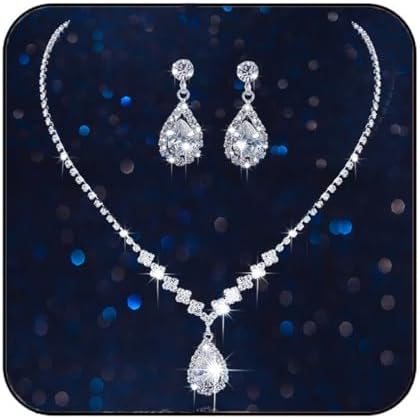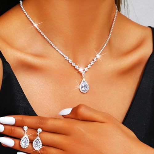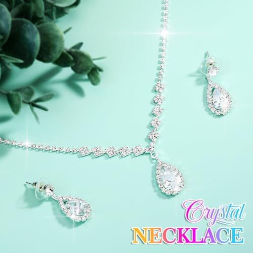 Aukmla Bride Wedding Necklace Earrings Set Silver Rhinestones Necklaces Bridal Crystal Jewelry Accessories for Women (Set of 3)