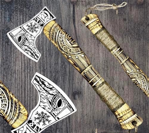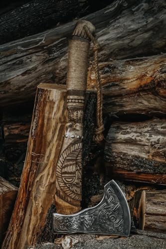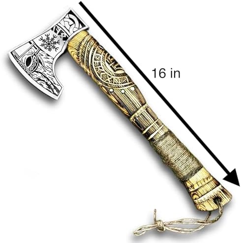 Poshland AX-7992 Custom Gift Forged Carbon Steel Viking Axe with Rose Wood Shaft, Viking Bearded Camping Axe, Mens Gift, Axe