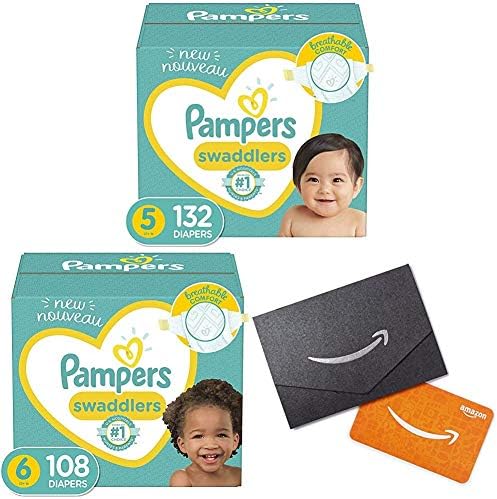 Baby Diapers Size 5, 132 Count - Pampers Swaddlers with Baby Diapers Size 6, 108 Count - Pampers Swaddlers and Amazon.com Gift Card in a Mini Envelope