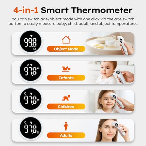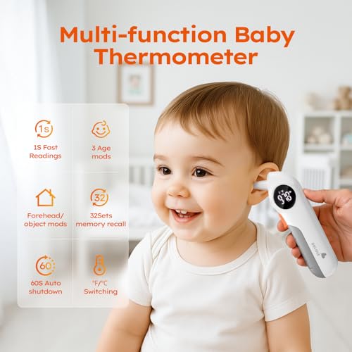 Sponsored Ad - Baby Thermometer for Infants, No-Touch Forehead and Ear Thermometer with Fever Alarm, Fast Accuracy Digital Thermometer for Adults and Kids, 3 Age Modes, Object Modes