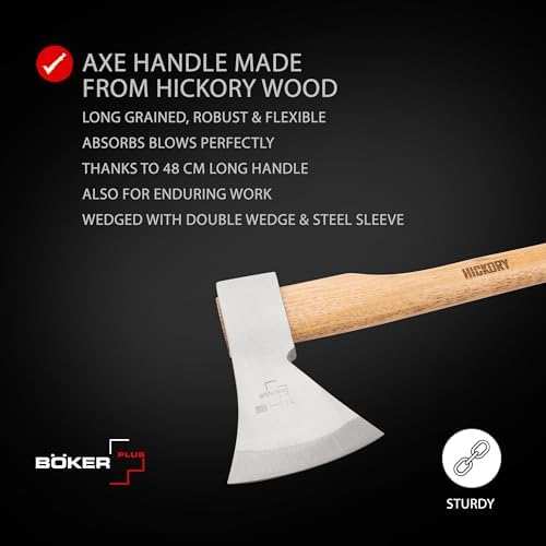 BÖKER PLUS® Appalachian Axe - Professional Bushcraft, Outdoor & Survival Axe - large carbon axe with hickory wood handle - professional camping axe with rhenish head 21.16 oz made of carbon steel 1055