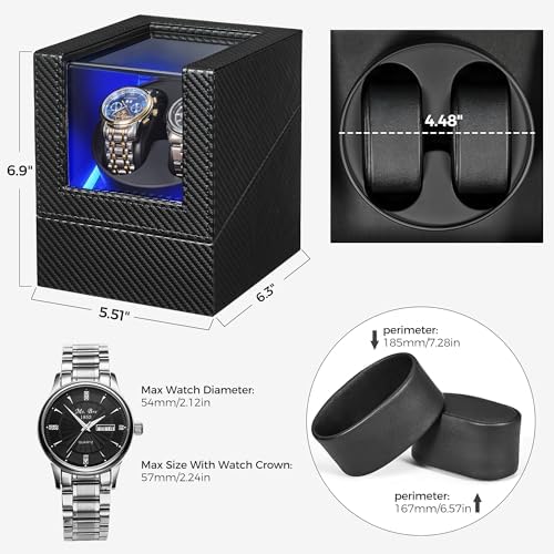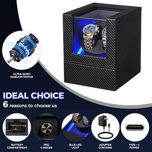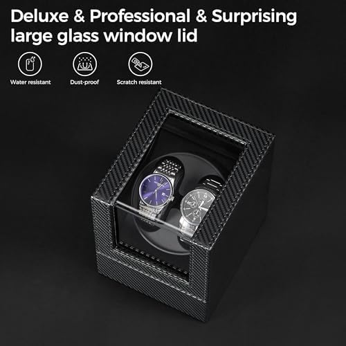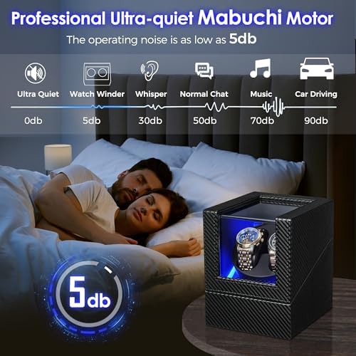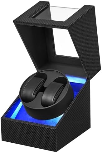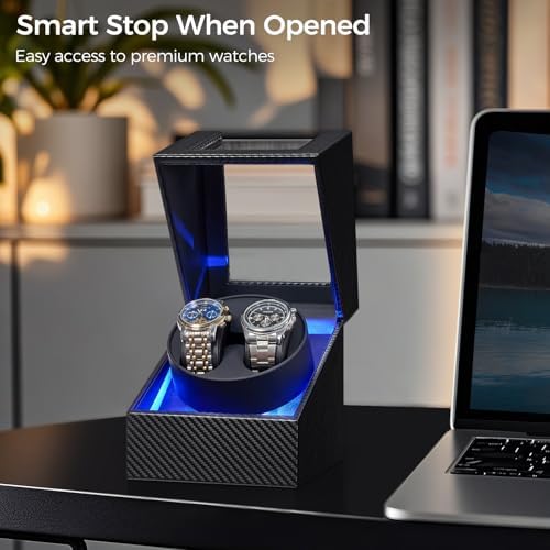 BEWISHOME Watch Winder for Automatic Watches, Double Watch Widner with Led Light 4 Modes, Automatic Watch Winder Box Watch Spinner with Japanese Quiet Motor Type-C Adapter or Battery Powered, SYQ02C