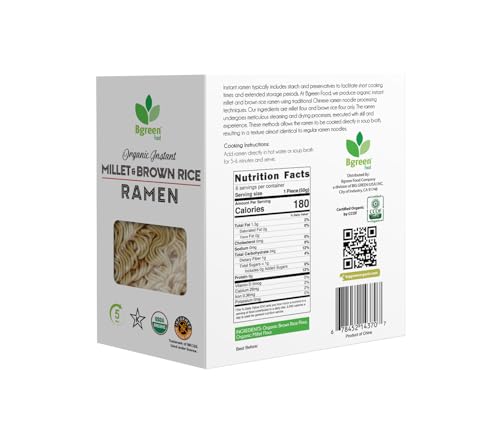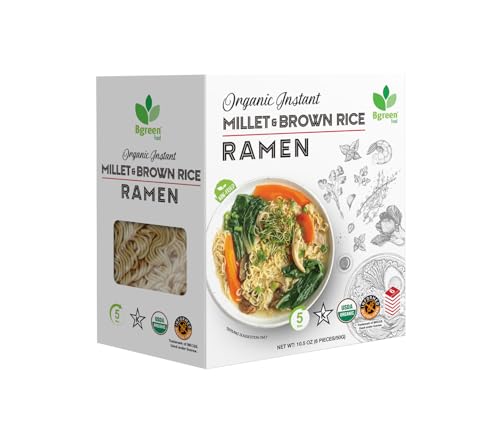 Big Green Organic Food - Organic Instant Millet & Brown Rice Ramen, USDA Organic, Add Directly to Broth, Ready to Eat Meals, Air-Dried, Non-Fried (1 Box)