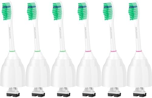 Sponsored Ad - e-Series Total Clean Replacement Toothbrush Heads, Compatible with Philips Sonicare Screw-on Electric Toothbrush Handles, 6 Standard Heads, Medium Firm Dupont Bristles, BM726, White