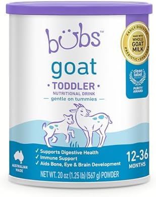 Bubs Goat Toddler Nutritional Drink, Non-GMO Whole Goat Milk-Based Gentle Formula, for Kids 12-36 Months, 20 oz