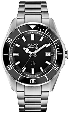 Men's Marine Star 'Series B' Stainless Steel 3-Hand Calendar Quartz Watch, Black Dial Style: 98B203