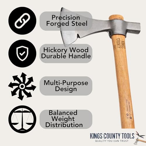 Kings County Tools Camping Tools | Pickaroon, Hatchet or Axe | German Drop Forged Blade | Lightweight and Easy to Carry | Hickory Handle