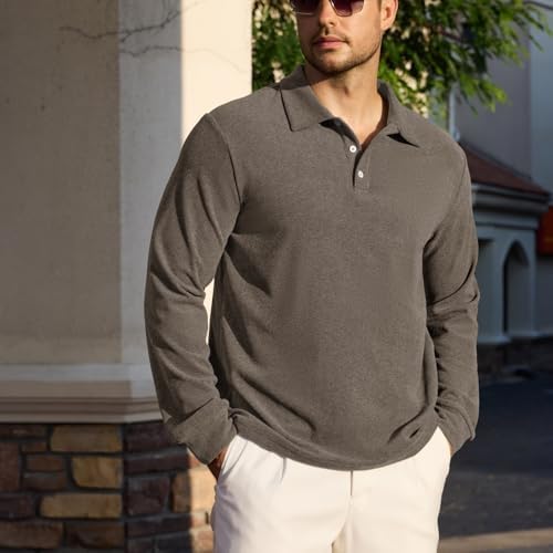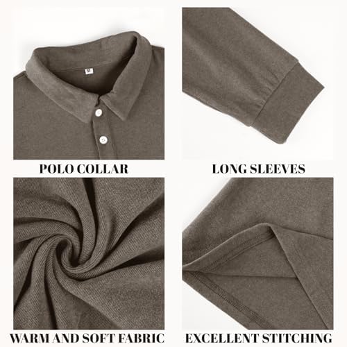 Men's Casual Polo Shirts Long Sleeve Basic Thermal Pullover Tops Classic Collar Solid Golf Shirts