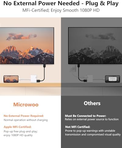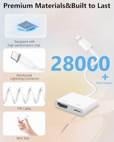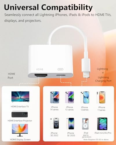 Lightning to HDMI Adapter for iPhone, [Apple MFi Certified] Digital AV Dongle,1080P Sync Screen Cable with Lightning Charging Port for iPhone, iPad to TV/Projector/Monitor No Need Power Supply
