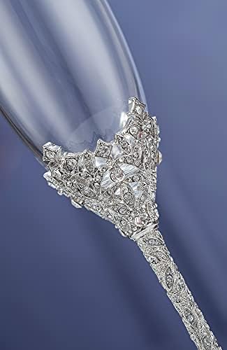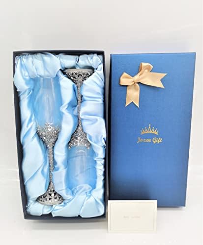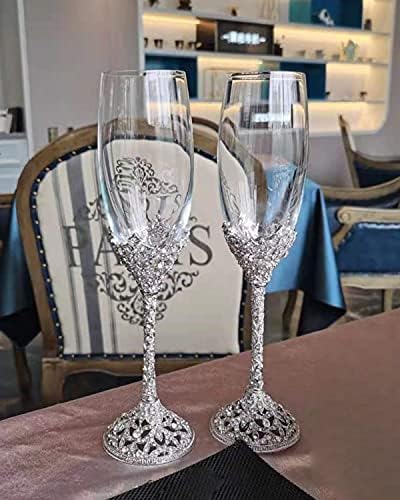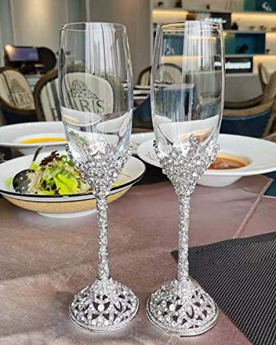 Sponsored Ad - Champagne Flutes - Crystal Glass Metal Base With Crystal Stones, Set of 2 Toasting Flute Pair, Wedding Anniversary Party Birthday Banquets and Gifts for Bride and Groom(Silver)