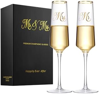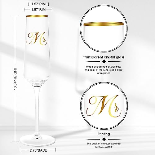 Mr and Mrs Wedding Champagne Flutes with Long Stem,Bride and Groom Toasting Crystal Glass Set, Bridal Shower Gift, Engagement Gifts for Couples, Newlyweds, Anniversary