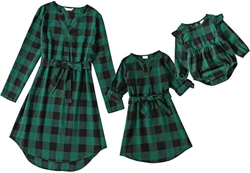 Mommy and Me Christmas Dresses Plaid Velvet Dress Xmas Holiday Party Mom Daughter Matching Outfits Photoshoot