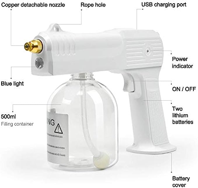 • Portable Safety: Our nano atomizer can adjust the amount of spray by turning the switch on the handle. 2M effective range! No warm up time required, start button starts.Low temperature atomization design.No preheating, fast spraying.
