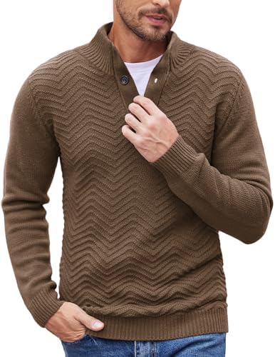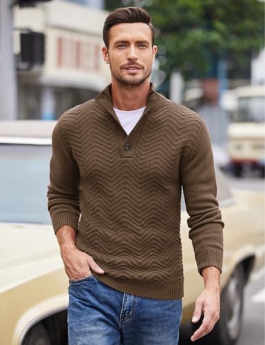 Sponsored Ad - Men Quarter Button Sweater Pullover Cable Knit Henley Mock Neck Sweater