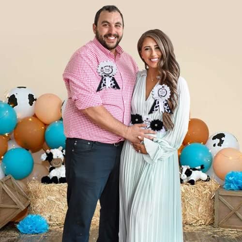 JOYMEMO Cow Baby Shower Sash - Maternity Sash Kit with Mom to Be Dad to Be Corsage Pins, Cow Gender Reveal Pregnancy Flower Belly Belt Photo Props New Parents Keepsake, Farm Cow Print Party Decor