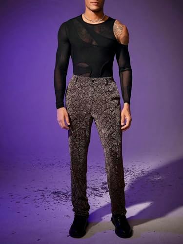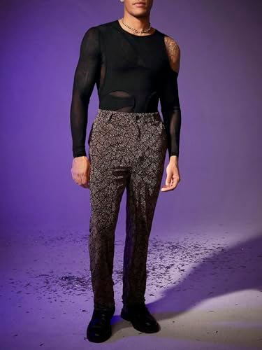 Men's Cold Shoulder Hollow Out Long Sleeve Mesh Tee Slim Fit Sheer Asymmetrical Neck T Shirt Clubwear