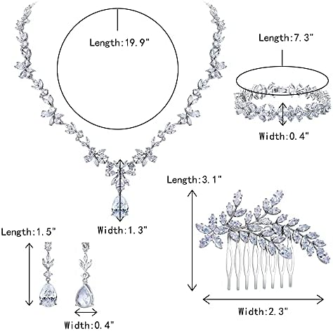 Sponsored Ad - Crysdue Wedding Jewelry Set for Women, Floral Leaf Vine Teardrop Necklace Dangle Earrings Bracelet and Hair Comb, Cubic Zirconia Elegant Party Prom Jewellery for Bridal Bridesmaid