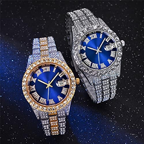 Men's Diamond Watch Fashion Crystal Rhinestone Quartz Analog Watch Iced-Out Bracelet Wrist Watch