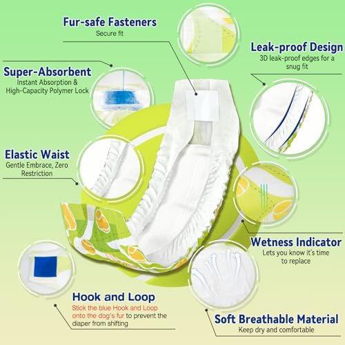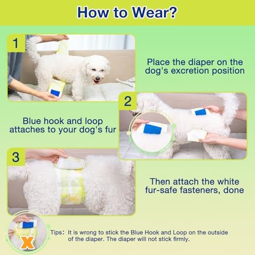 Dog Diapers Male 60ct, Disposable Non-Slip Male Dog Wraps, Super Absorbent Puppy Diapers with Rapid-Dry Technology, Wetness Indicator, Leak-Proof Doggie Pampers, X-Small